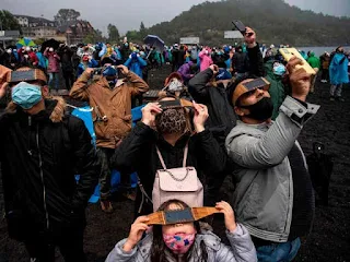 شاهد ألاف الأشخاص في منطقة لاأراوكانيا في تشيلي يوم أمس الاثنين كسوفا كليا للشمس هو الأخير في عام 2020م